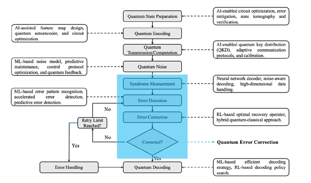 This research project sits right at that border, and it is concerned with the application of artificial intelligence to enhance quantum error correction and move quantum hardware to a state where it can be fault tolerant. Leading code decoders like the surface code are efficient but do not scale as well as they would have with smarter adaptive designs and must operate with ultra-low-latency hardware, which is highly challenging in real devices. With the help of modern machine learning, including convolutional and graph neural networks that discover complex patterns in the syndrome data and reinforcement learning agents that optimize correction plans in the dynamic environment, the lab develops AI-based decoders, and control schemes that are more accurate, noise-sensitive, and hardware-constrained. The work does not only explore the state of the art in AI-enhanced quantum error correction but will also prototype the algorithms that will secure the next-generation quantum processors and transform noisy and fragile qubits into robust computational assets.