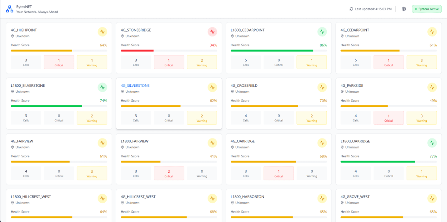 Our research concentrates on this severe weakness, suggesting a solution named BytesNET; an artificial intelligence-based system, which is aimed to predict when the network performance decline and prevent an outage. Using an enhanced machine-learning-based model, i.e. XGBoost framework, with a 93.06% accuracy rate on performance comparison, BytesNET processes such high-level telecommunication KPIs as radio network availability, call drop rates, and throughput indicators to uncover concealed instability trends. The system does not just predict but creates severity levels and automated root cause analysis, which will inform the administrators on informed proactive decision-making. This work prototyping the next generation of smarter networks, by integrating SMS and email alerting features, converts volatile syndrome data into solid computation, which guarantees zero-surprise connectivity.